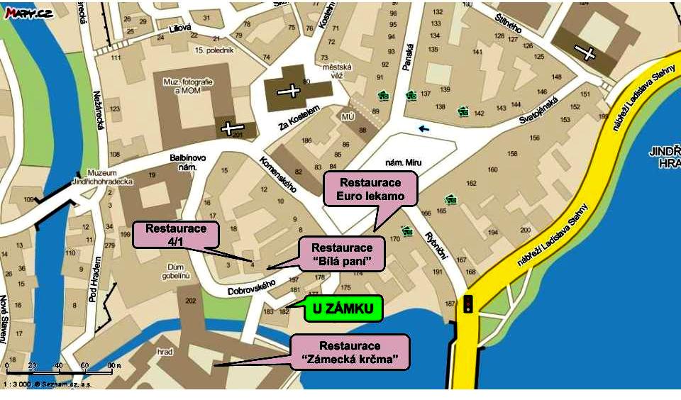 V dosahu několika desítek metrů je dostatek restaurací, které vás jistě uspokojí svojí nabídkou. Některé najdete na mapce nejbližšího okolí.